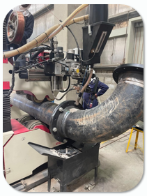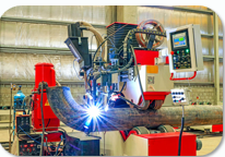 Pipe Cutting & Beveling Multifunctional Fit Up Stations Self-centering check positioners Spool movements through lateral trolley conveyor system Fully Automatic welding process TIG (GTAW) MIG (GMAW) Flux Cored (FCAW) Submerged ARC (SAW) Split powered rotator & Press rotator type for elbow welding Cantilever type automatic positioner for straight pipe welding